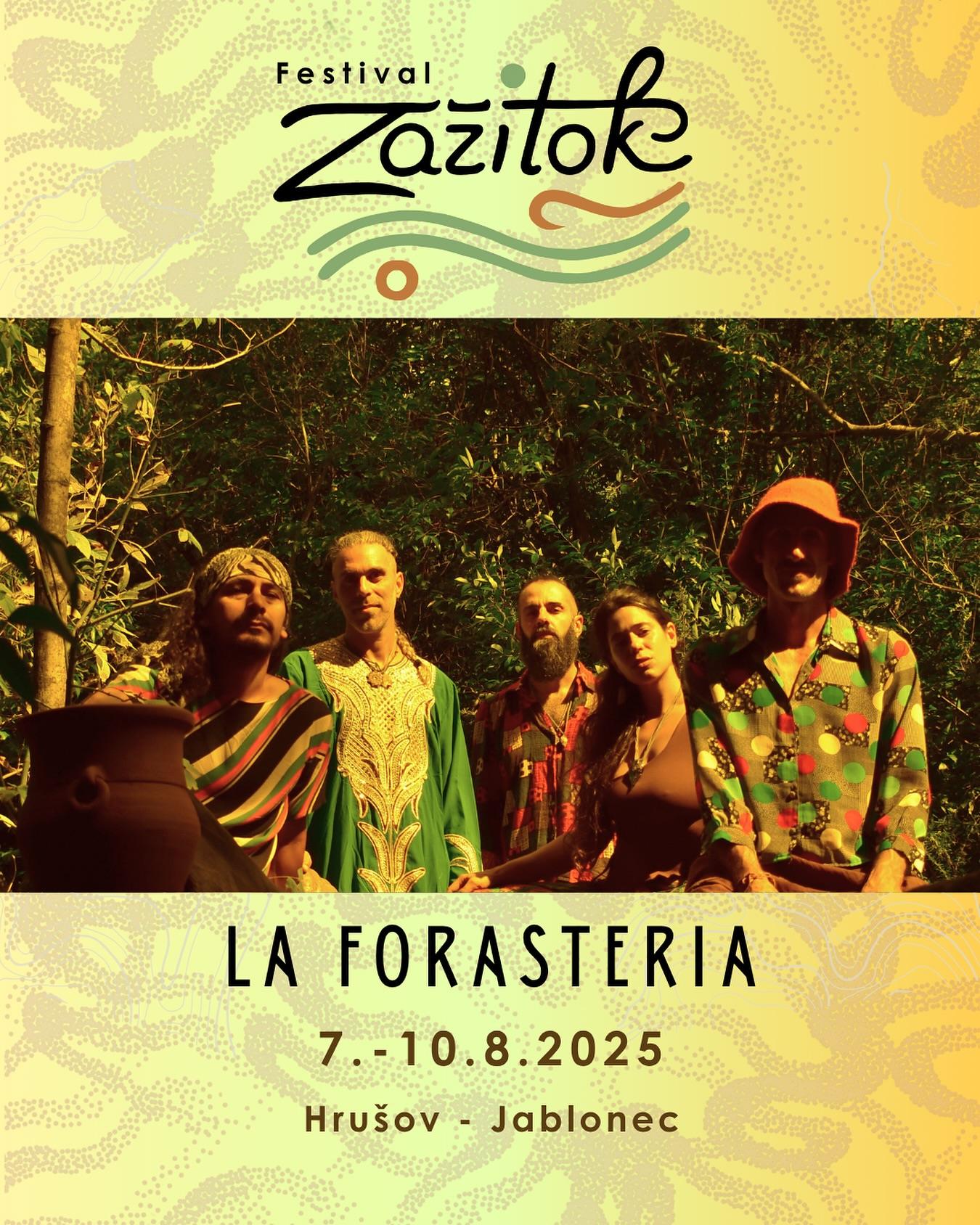 La Forastería je hudobný kmeň z Argentíny, ktorý spája afro-americkú a latinsko-americkú koreňovú hudbu s modernými žánrami, ako je elektronická hudba, funk a psychedelická hudba. Vytvárajú živé vystúpenia, ktoré sú tanečné aj introspektívne a využívajú zvuk ako nástroj na oslavu a liečenie. Skupina skúma prostredníctvom svojej hudby „novú paradigmu“, žije a hrá spôsobom, ktorý odráža ich permakultúrnu víziu života. Vnímame, že vízia nášho festivalu ZažiTok a ľudí ktorí ho tvoria je prepojená s tou ich a preto sa veľmi tešíme na ich návštevu.